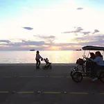 The accommodation features views of the sea and such modern comforts as climate control. For added convenience, a walk-in shower and a separate toilet are available at the apartment. Moreover, there are a hair dryer and towels as well.